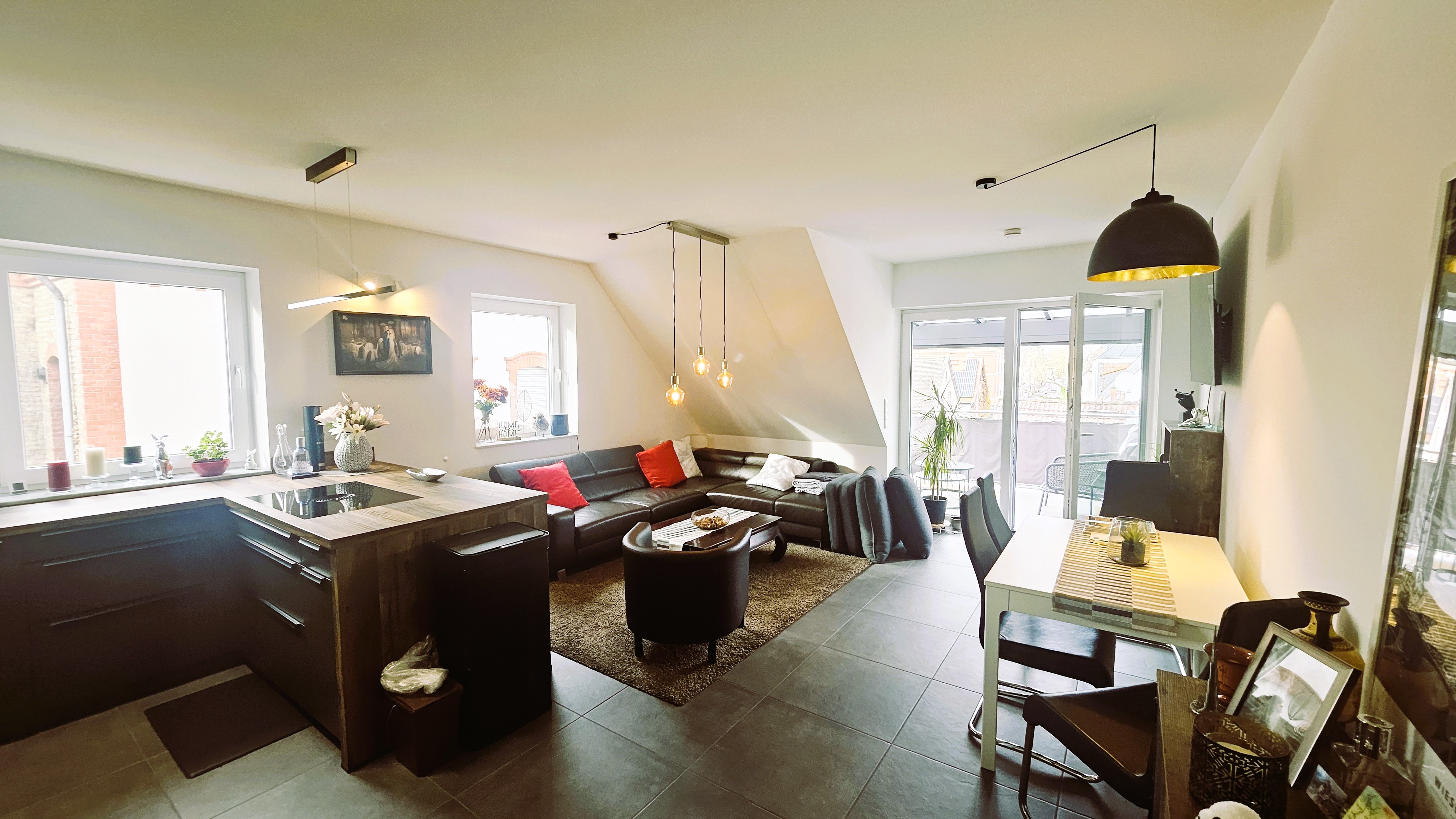 Innen erwartet Sie ein Ambiente zum Verlieben. Die Eigentümer haben größten Wert auf erstklassige Materialien und ein harmonisches Wohngefühl gelegt. Mittelpunkt der Wohnung ist der offene Wohn-, Ess- und Kochbereich. Die bereits integrierte luxuriöse Einbauküche mit Kochinsel lässt keine Wünsche offen – und ist selbstverständlich im Mietpreis enthalten. Vom Wohnbereich gelangen Sie auf den sonnigen Süd-West-Balkon, ideal für entspannte Sommerabende.