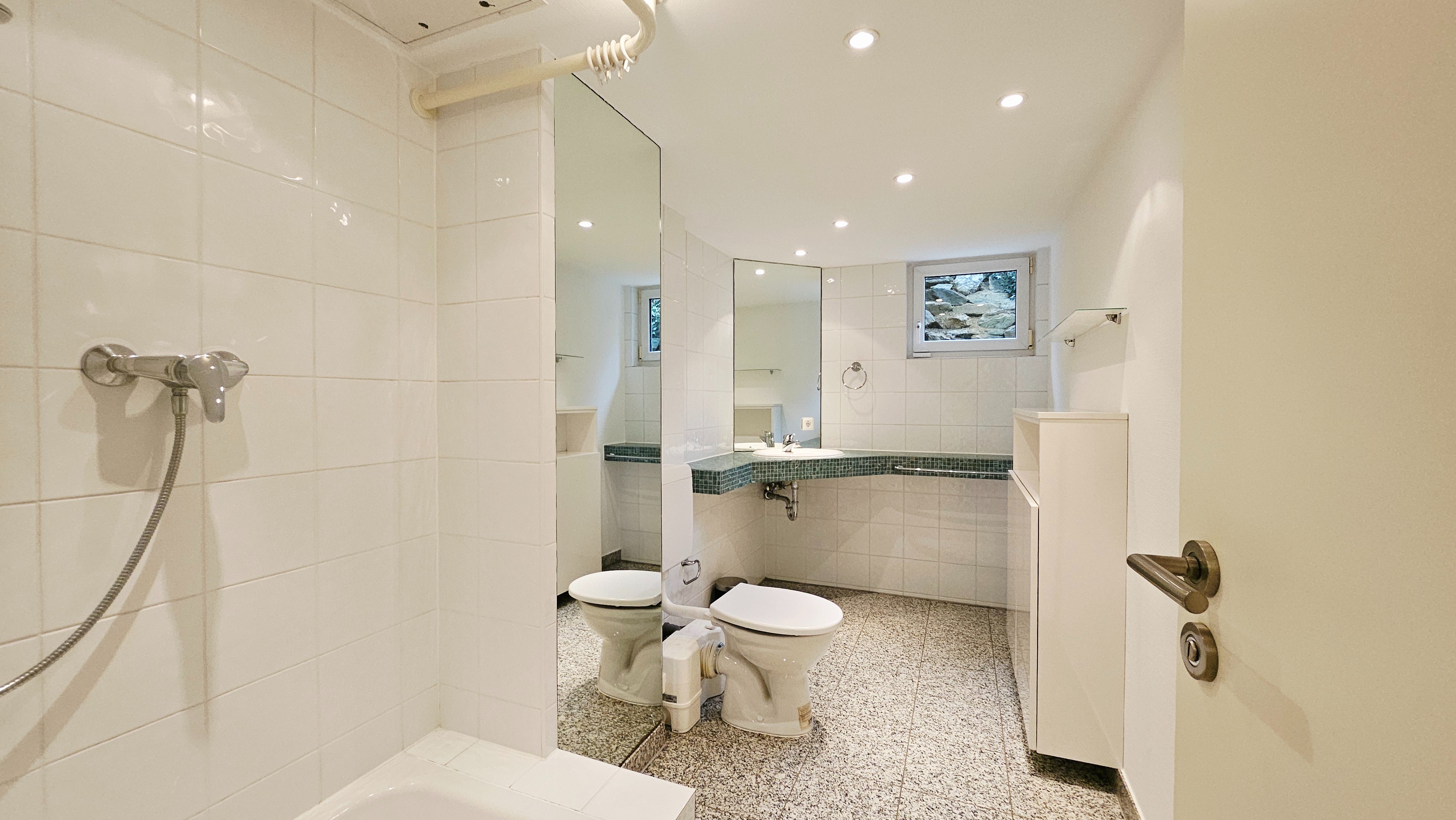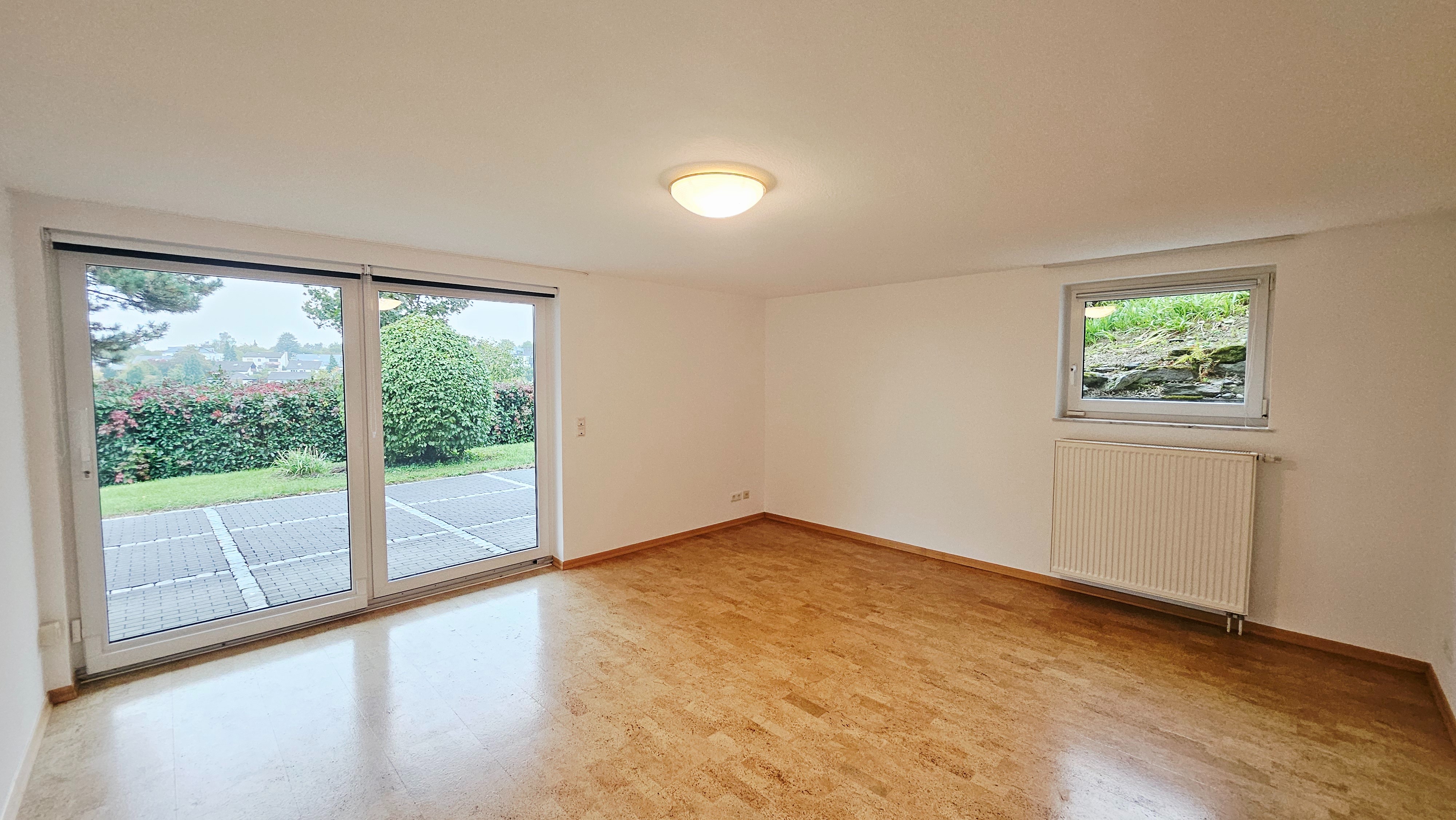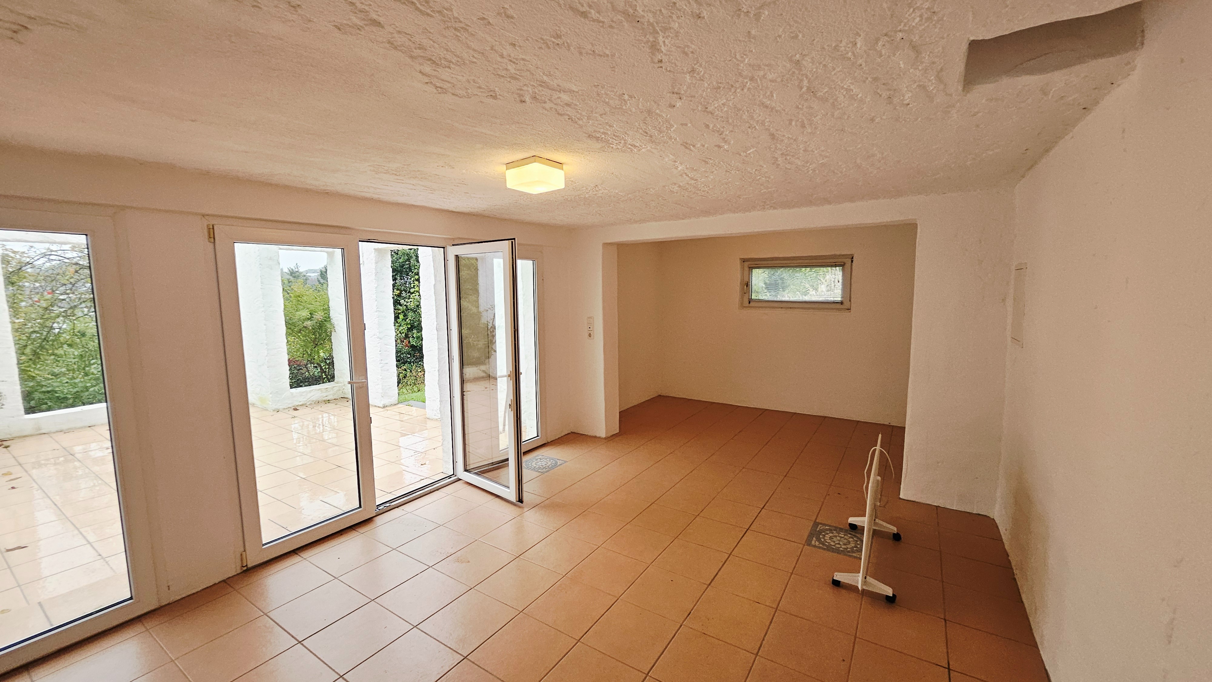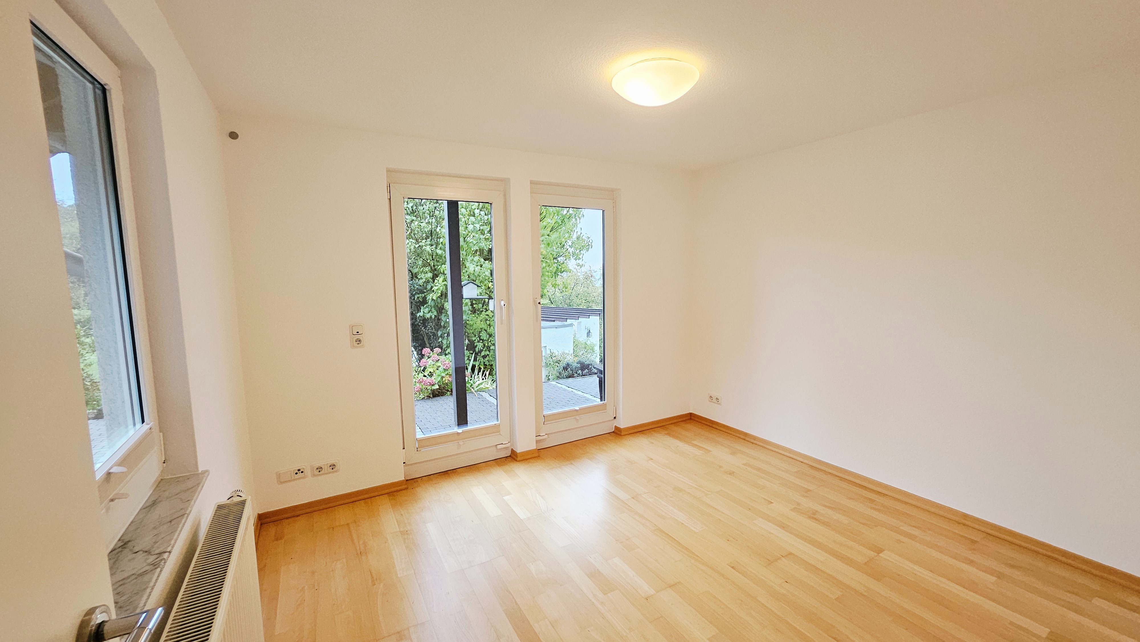 Das Gartengeschoss bietet zwei weitere Zimmer mit direktem Zugang auf die untere Terrasse und in den Garten. Durch die Hanglage wirkt dieser Bereich nicht wie ein Untergeschoss, sondern wie eine zusätzliche, sonnige Wohnebene mit viel Wohnqualität.