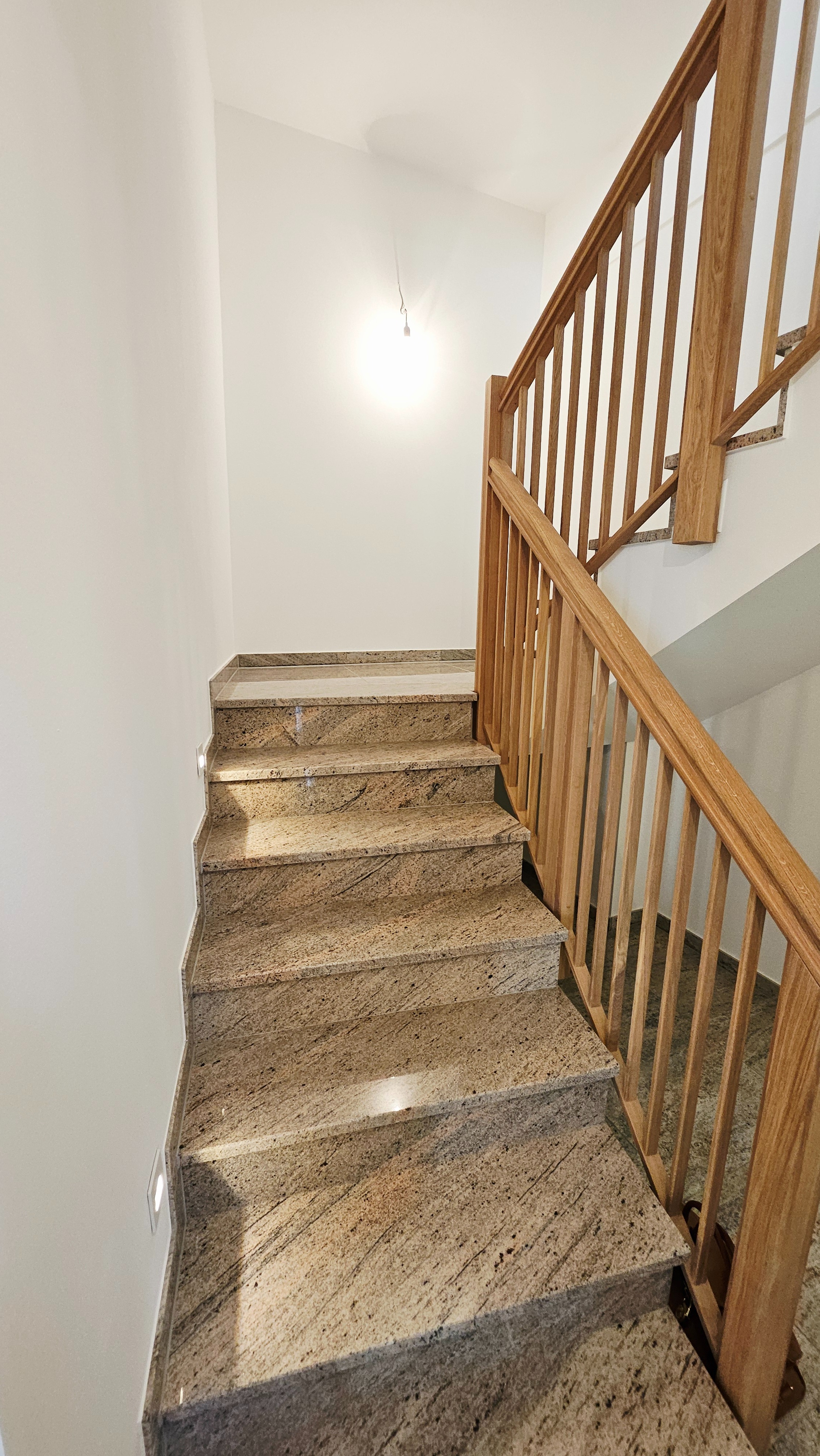 Über das Treppenhaus mit edlem Granitbelag gelangen Sie in das Obergeschoss. Hier befinden sich ein ruhiges Schlafzimmer sowie ein weiteres Zimmer, das sich ideal als Ankleide oder Homeoffice nutzen lässt. Das stilvoll gestaltete Badezimmer dieser Etage überzeugt mit moderner Ausstattung und hochwertiger Ausführung.