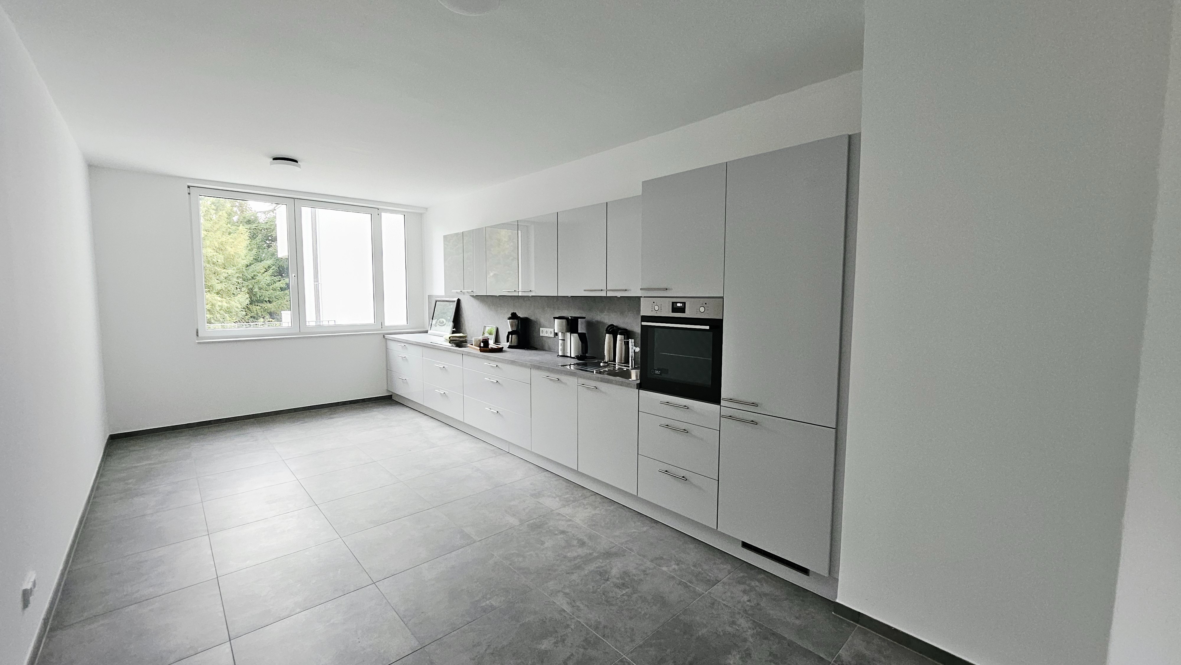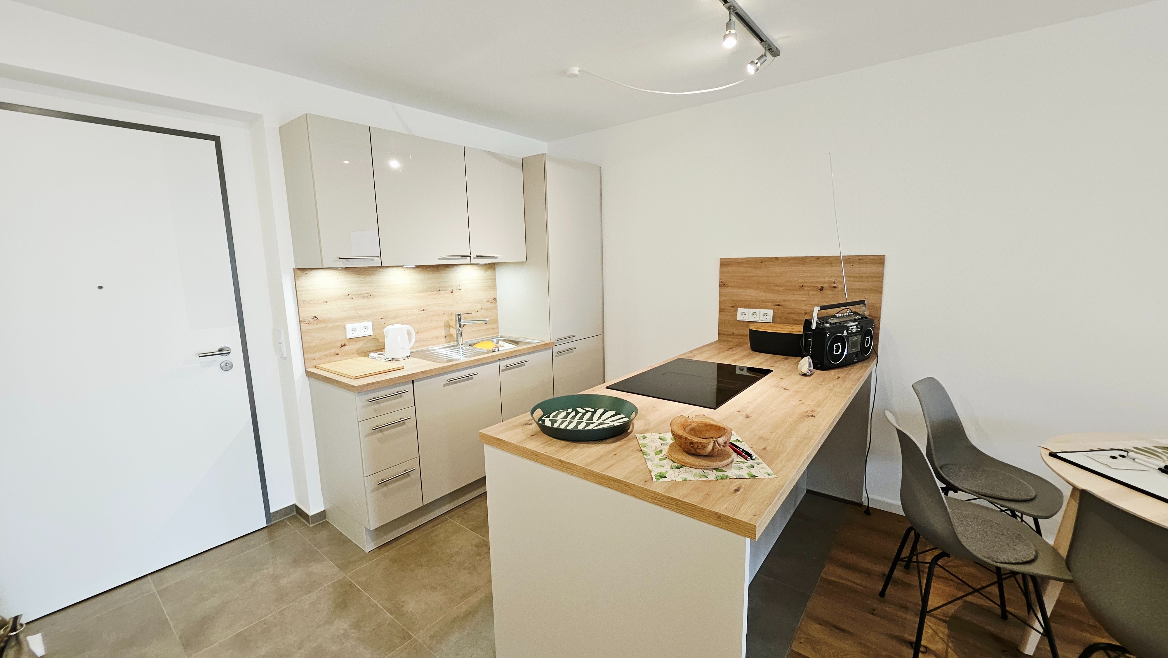 Die vollständig eingerichtete Einbauküche ist modern, übersichtlich und sofort nutzbar. Sie ist so integriert, dass alle Bereiche gut erreichbar bleiben. Das Schlafzimmer bietet durch seinen klaren Zuschnitt eine entspannte Rückzugsmöglichkeit und lässt sich funktional wie behaglich einrichten.
