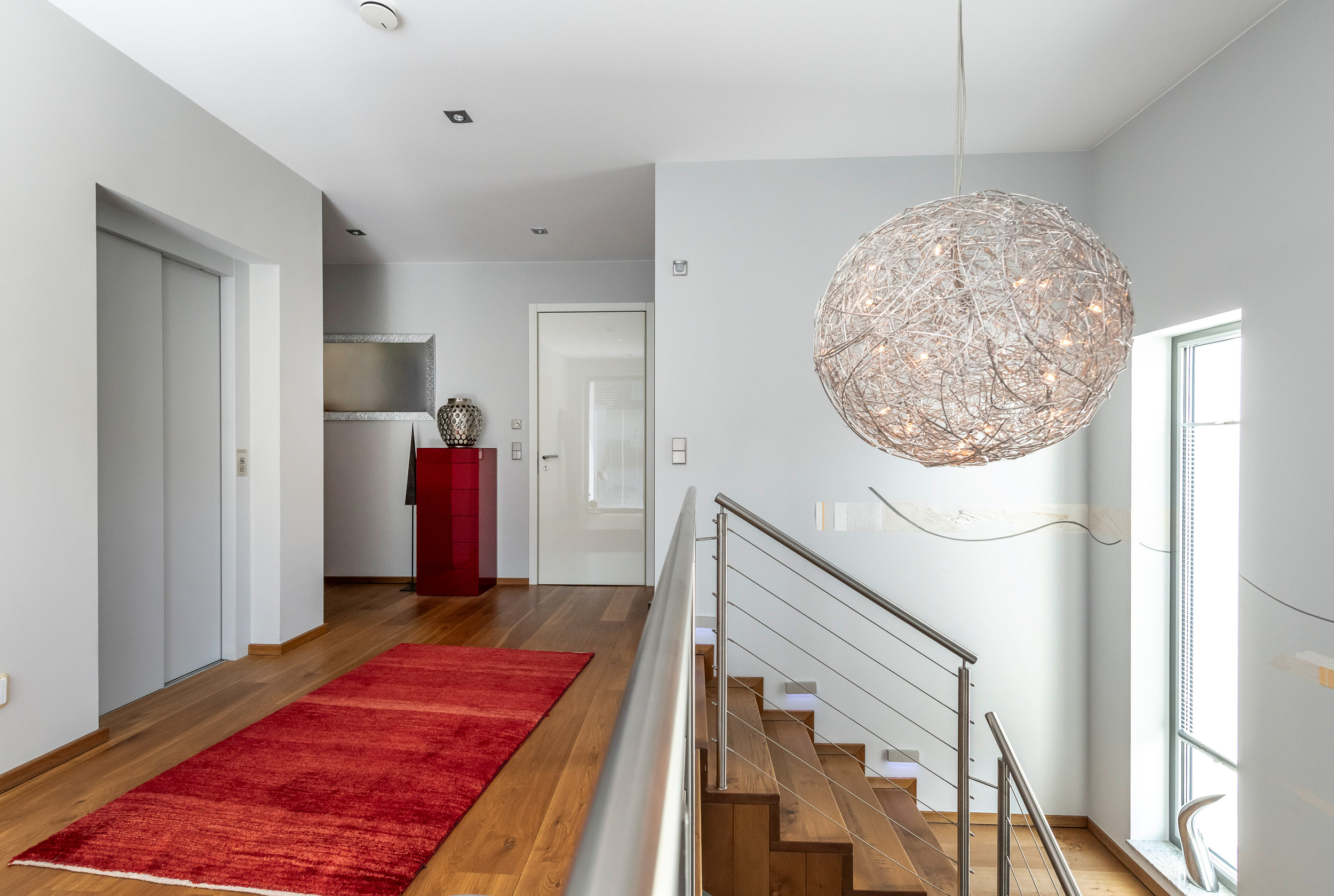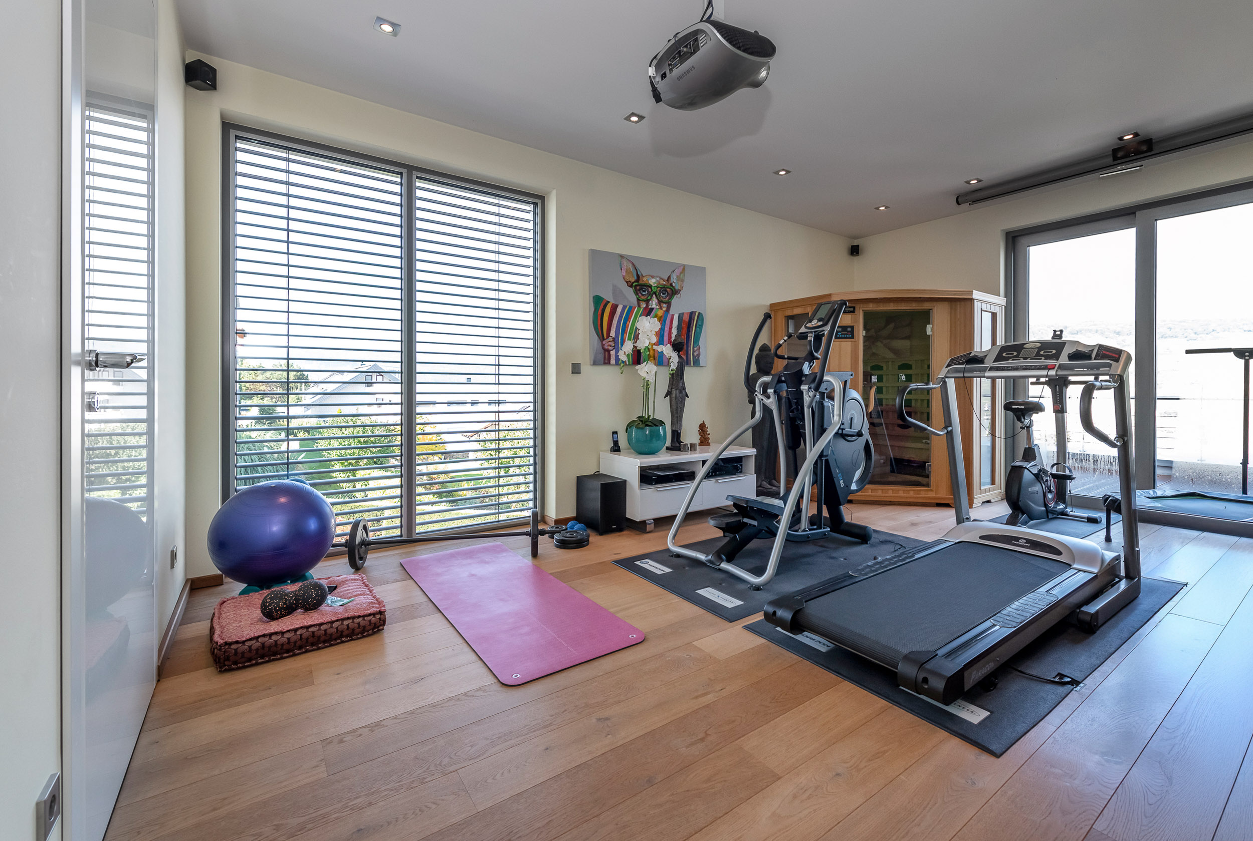 Im Untergeschoss erwartet Sie eine Garage mit Platz für bis zu sechs Fahrzeuge. Weitere Nutzflächen, Technikräume und Stauräume sorgen für maximalen Komfort im Alltag. Das gesamte Haus ist mit modernster Technologie ausgestattet, alles, um Ihren Wohnkomfort auf ein neues Level zu heben.
