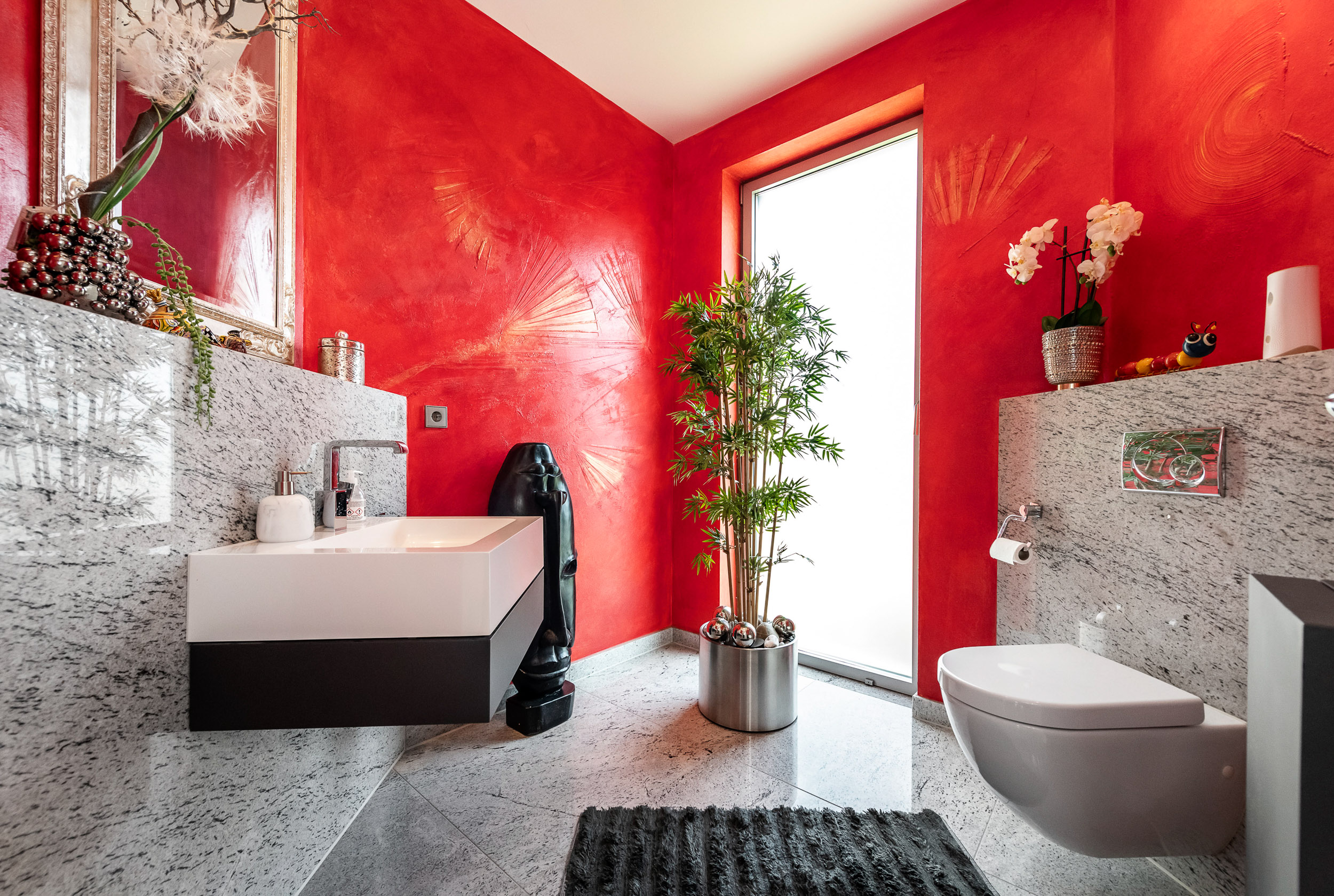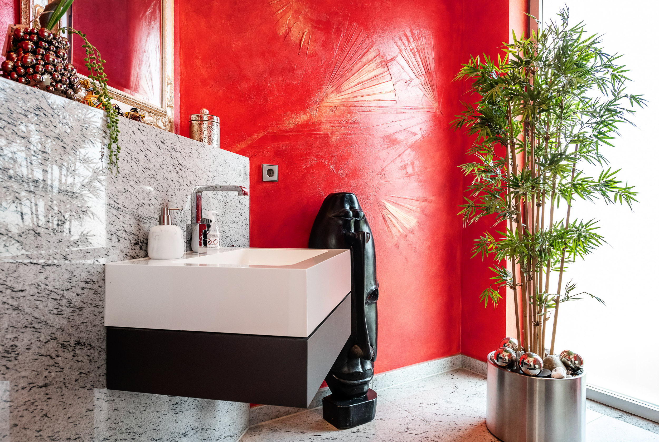 - Im Treppenhaus und Gäste-WC wurden die Wände von einem Rheingauer Künstler gestaltet.