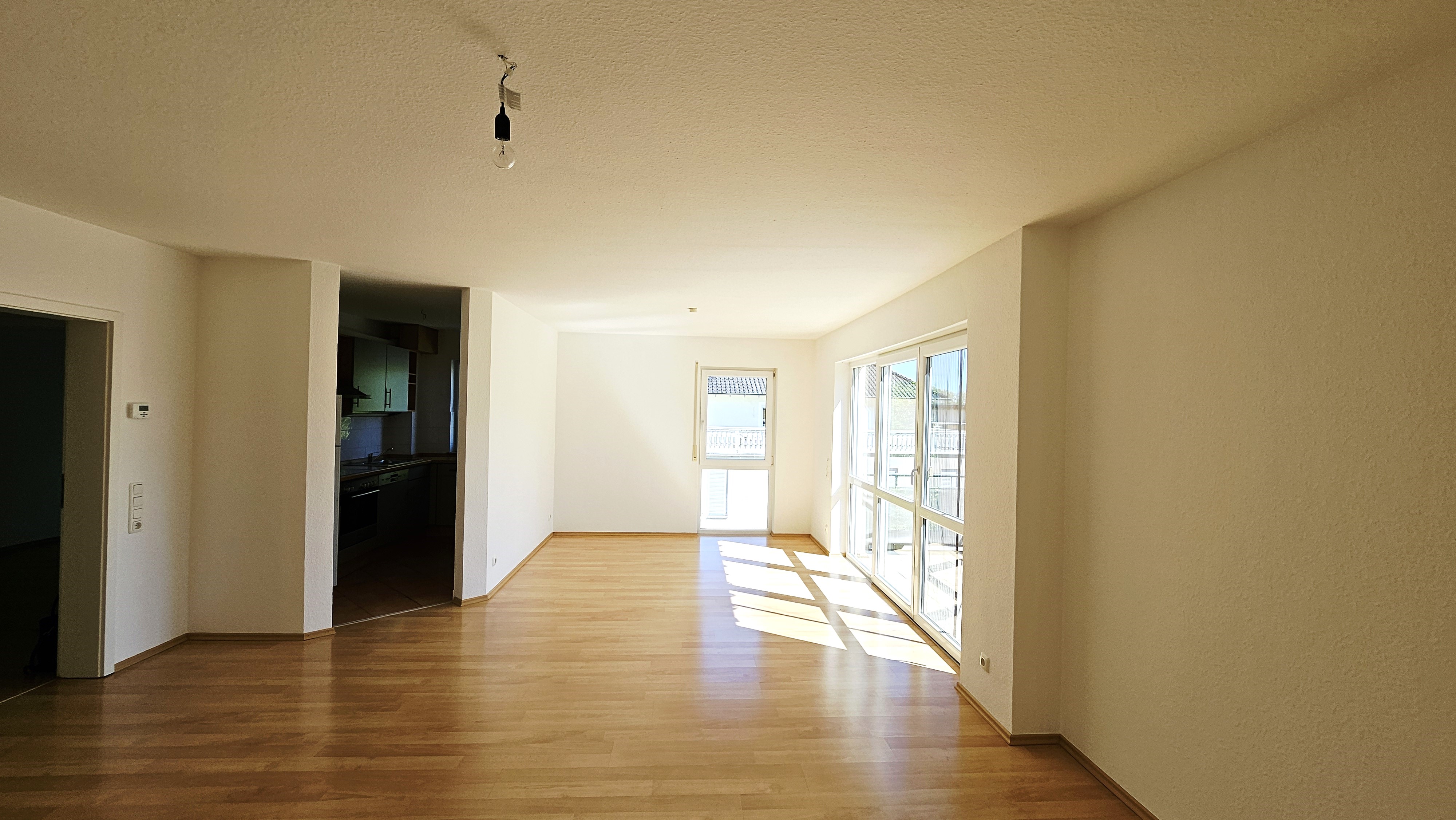 Auf ca. 84 m² Wohnfläche erwartet Sie ein offener, lichtdurchfluteter Wohn- und Essbereich, der das Herzstück der Wohnung bildet. Von hier aus gelangen Sie direkt auf den sonnigen Balkon mit schönem Blick ins Grüne – der perfekte Ort für entspannte Stunden im Freien. Eine Markise spendet Schatten in den Sommermonaten.