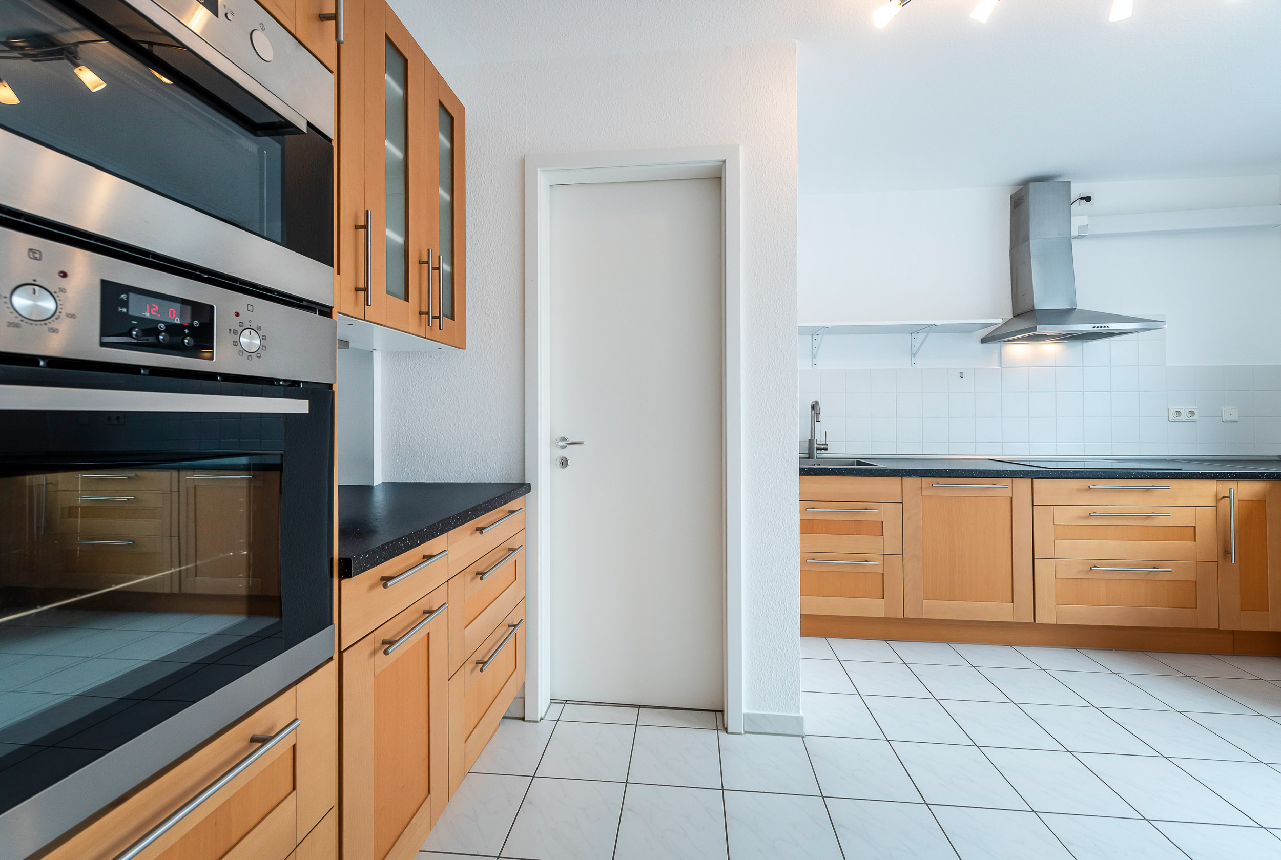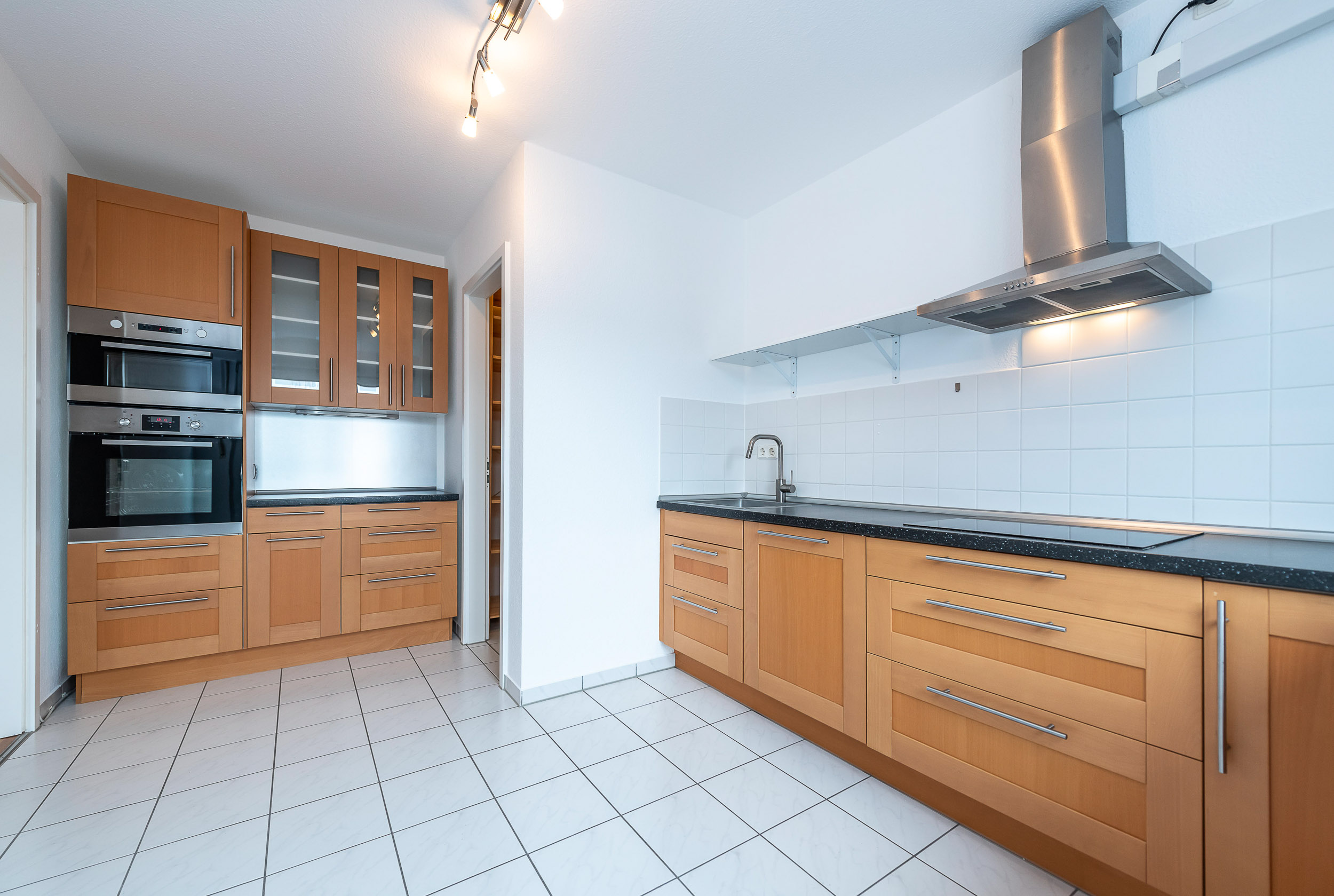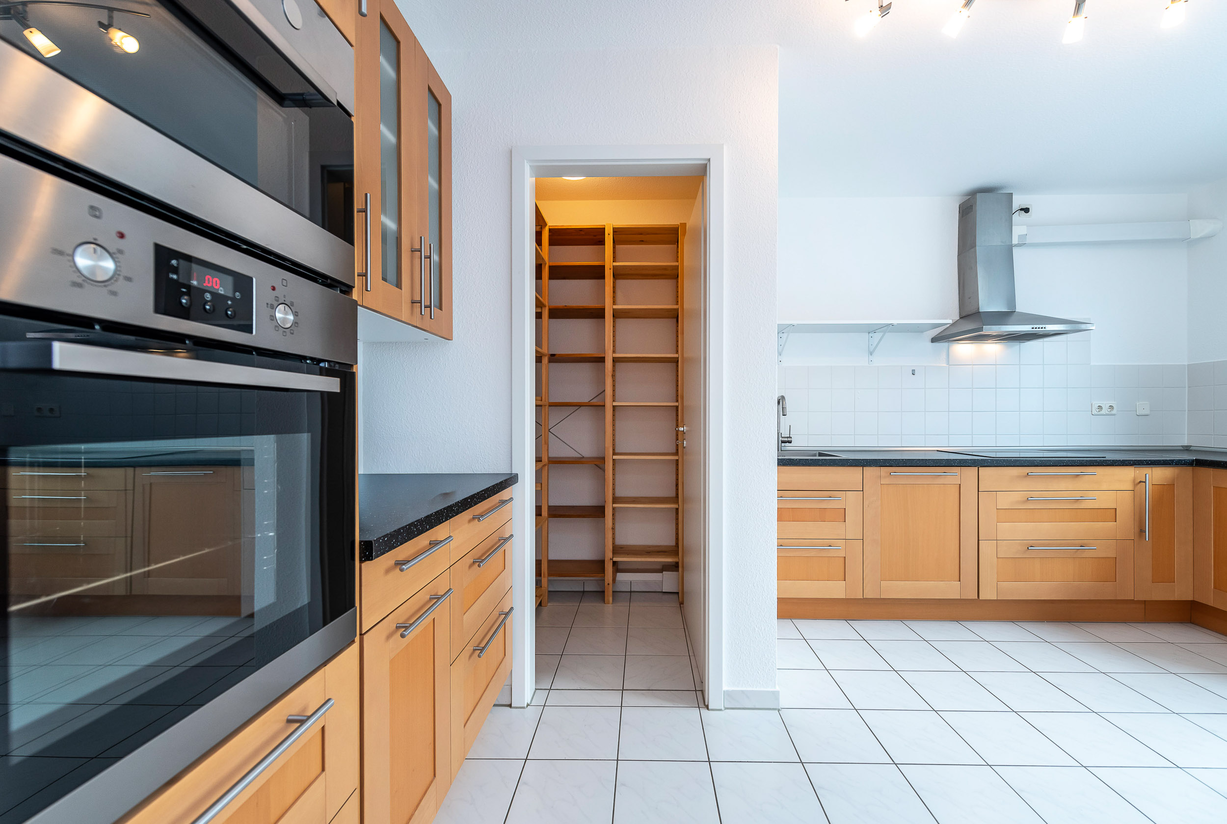 Küche mit Einbauküche und Vorratskammer
