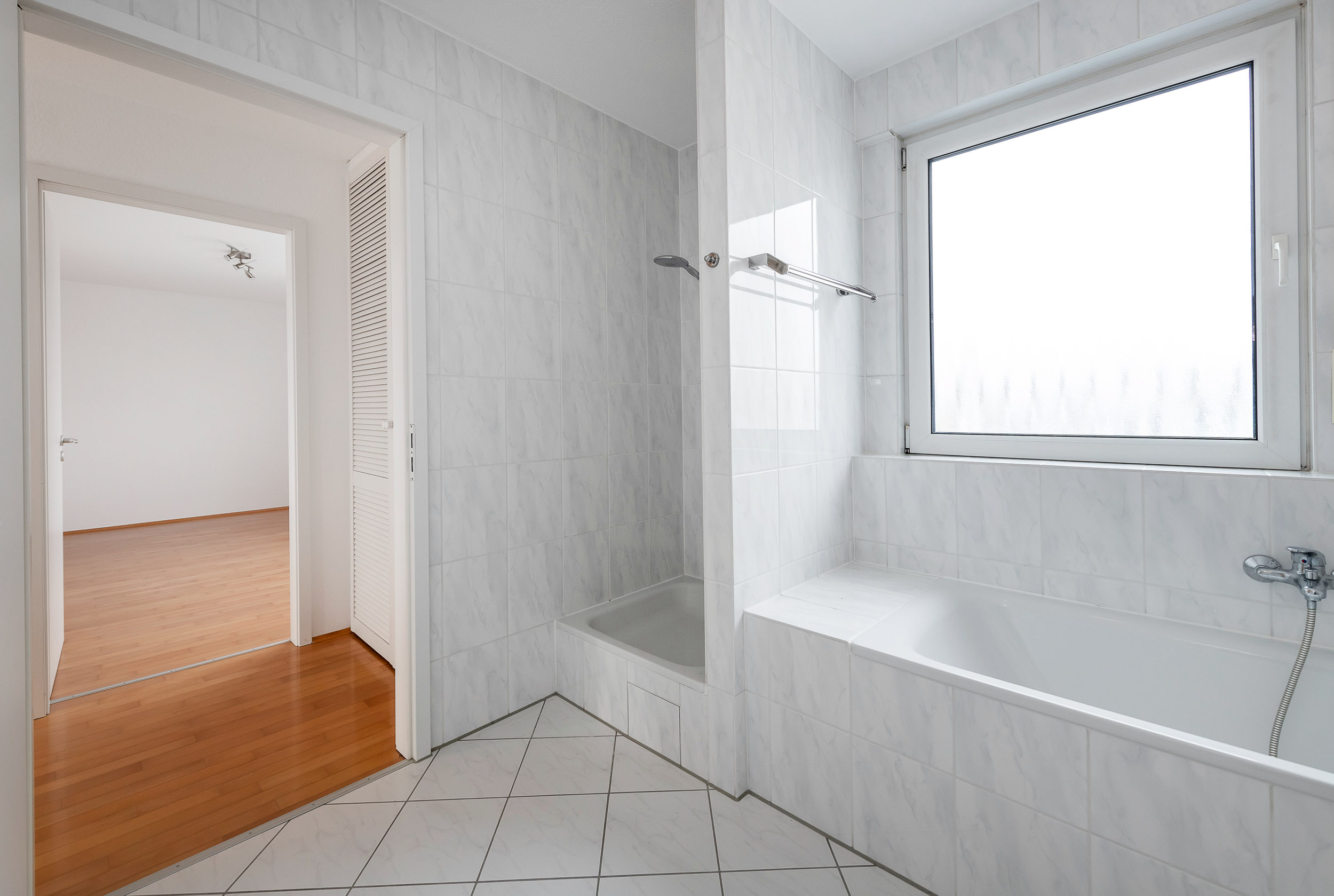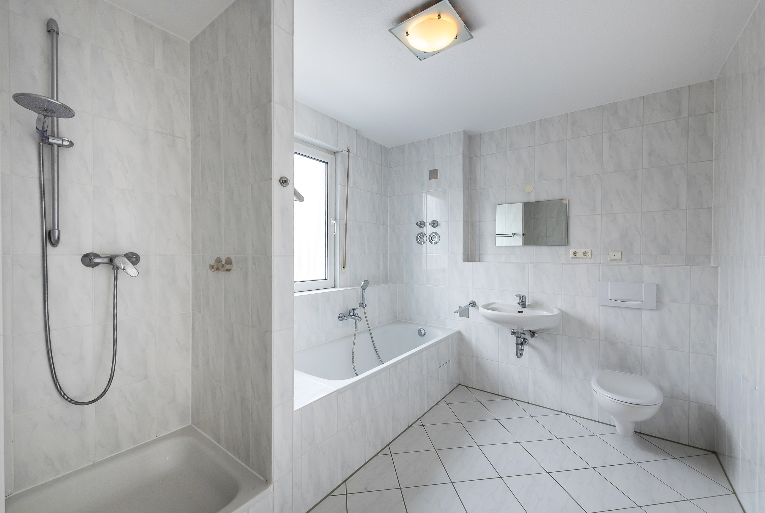Tageslicht-Vollbad mit WC, Wanne und Dusche
