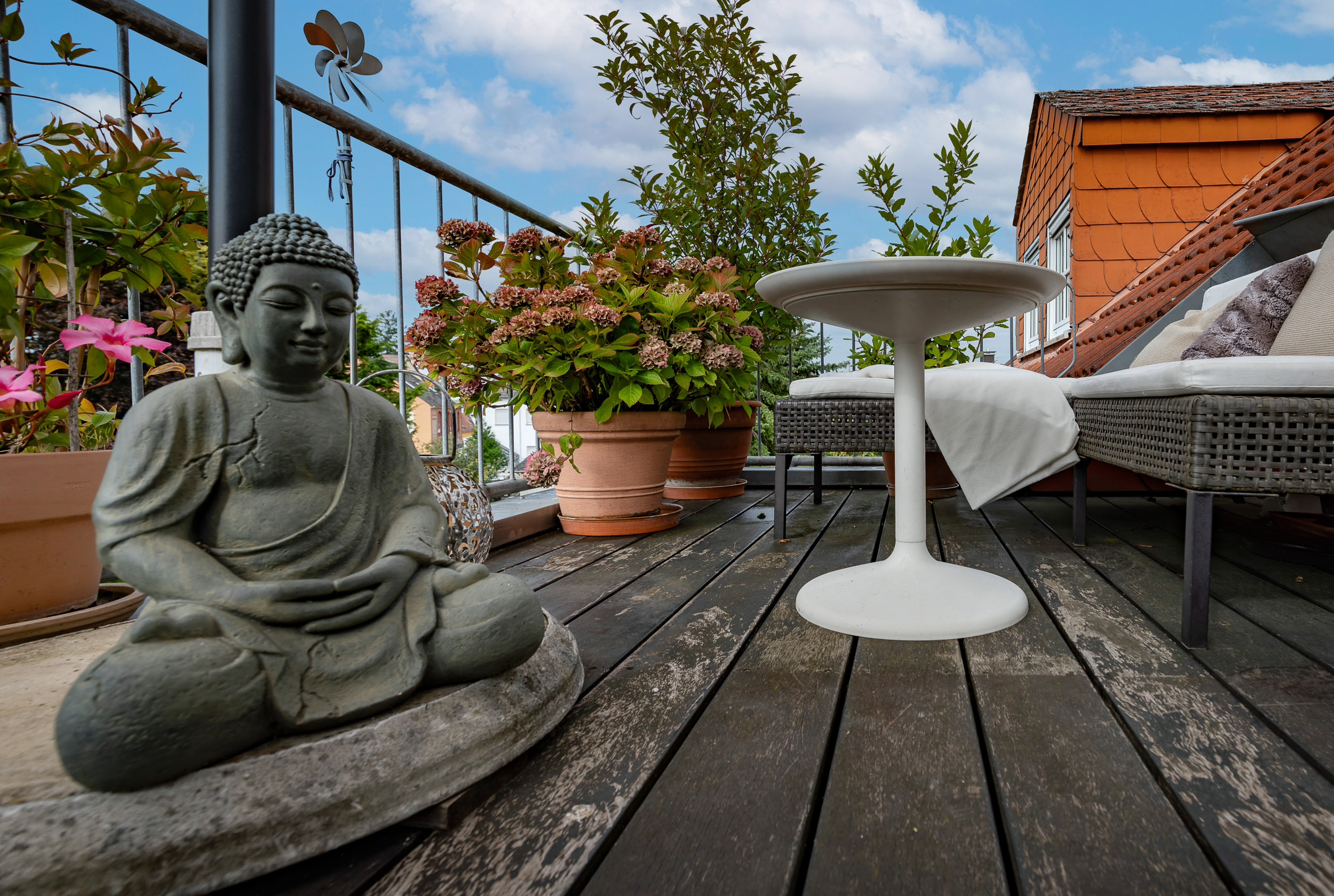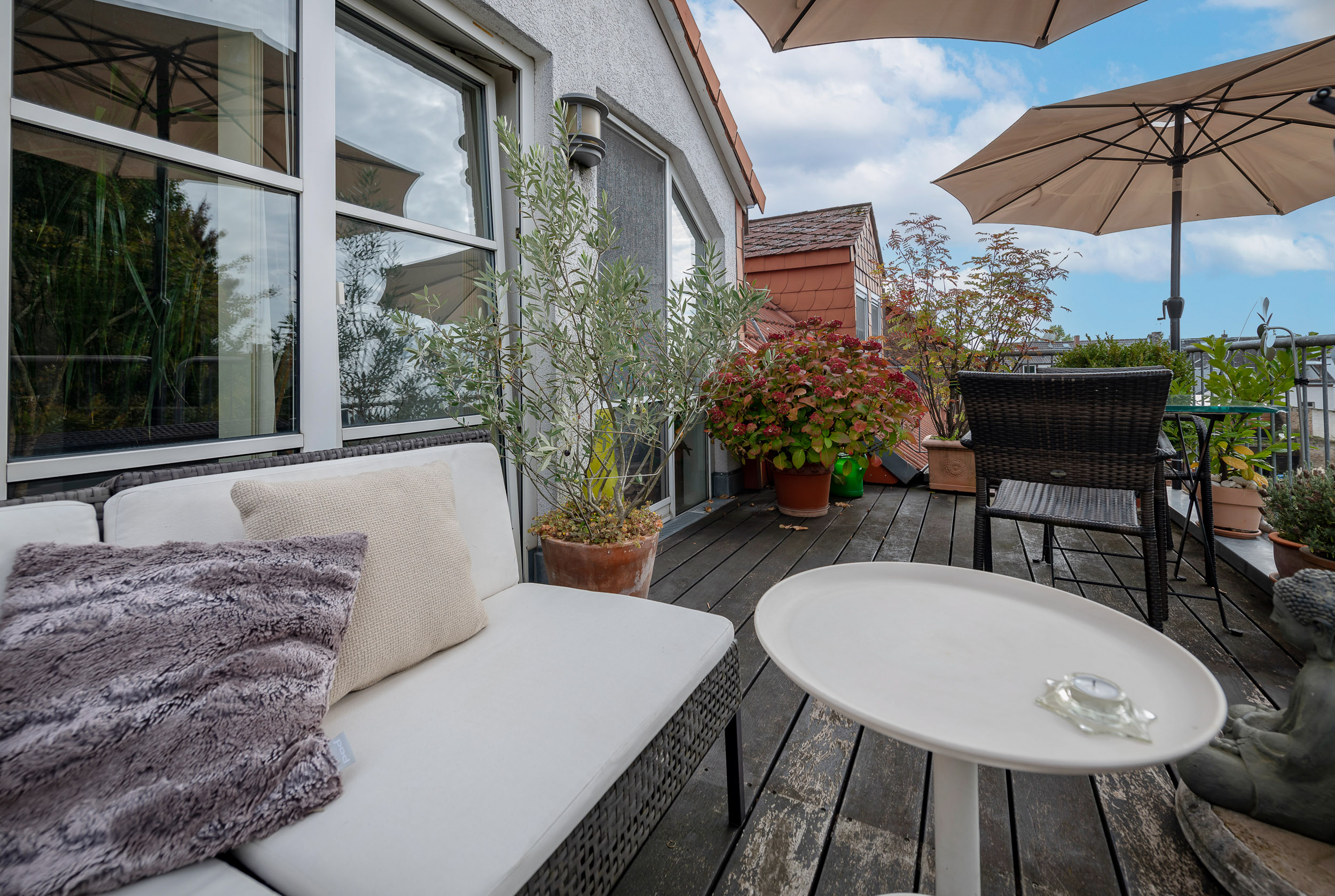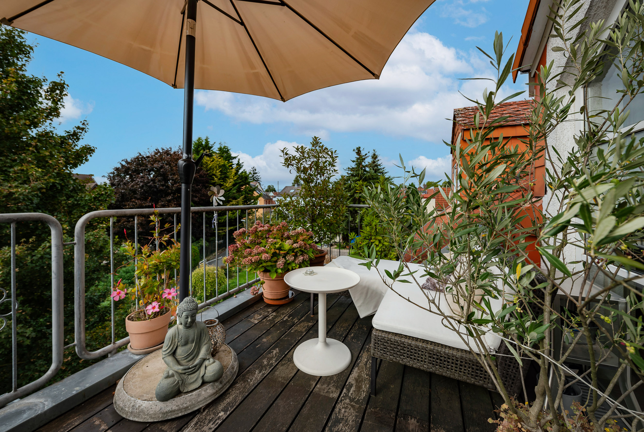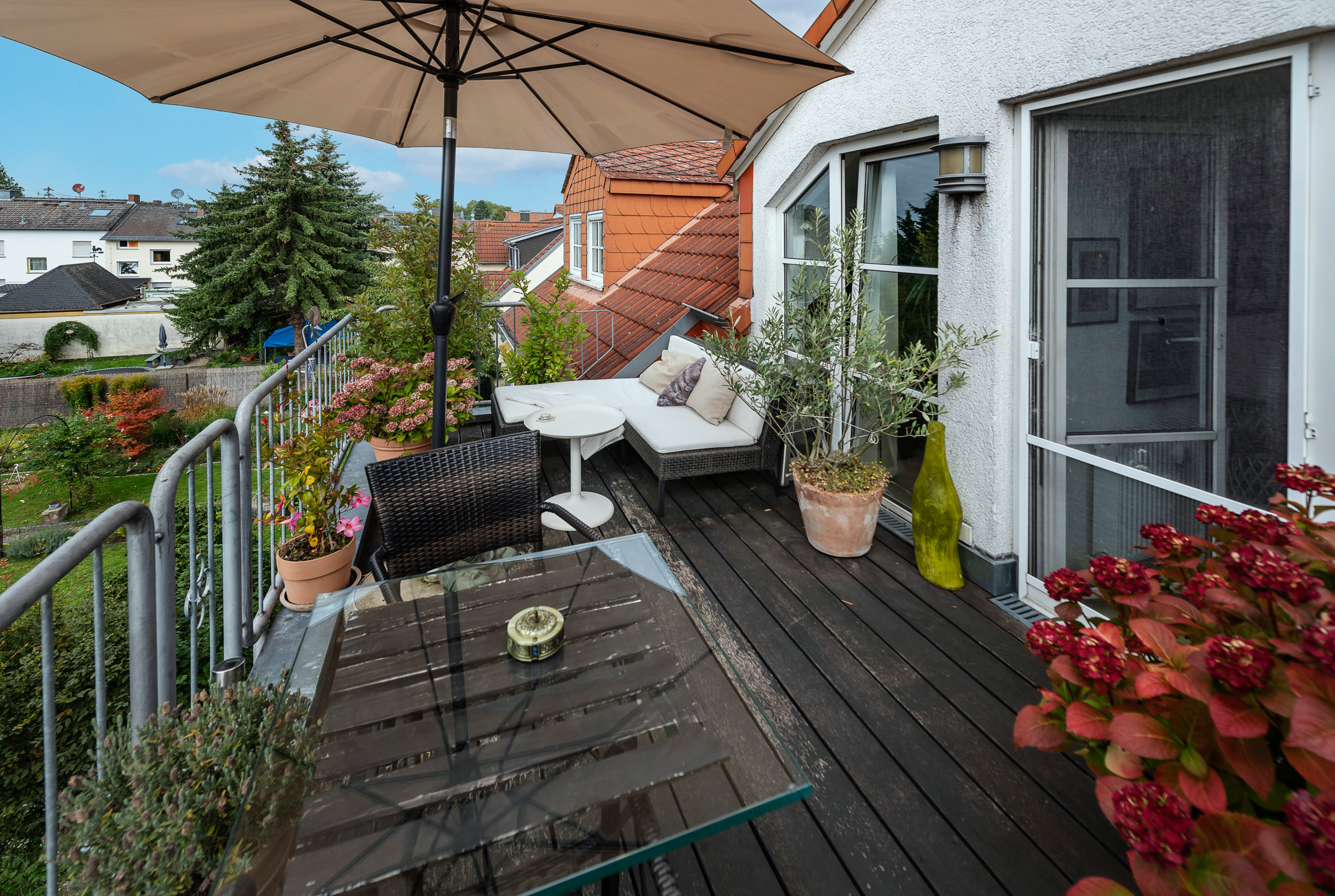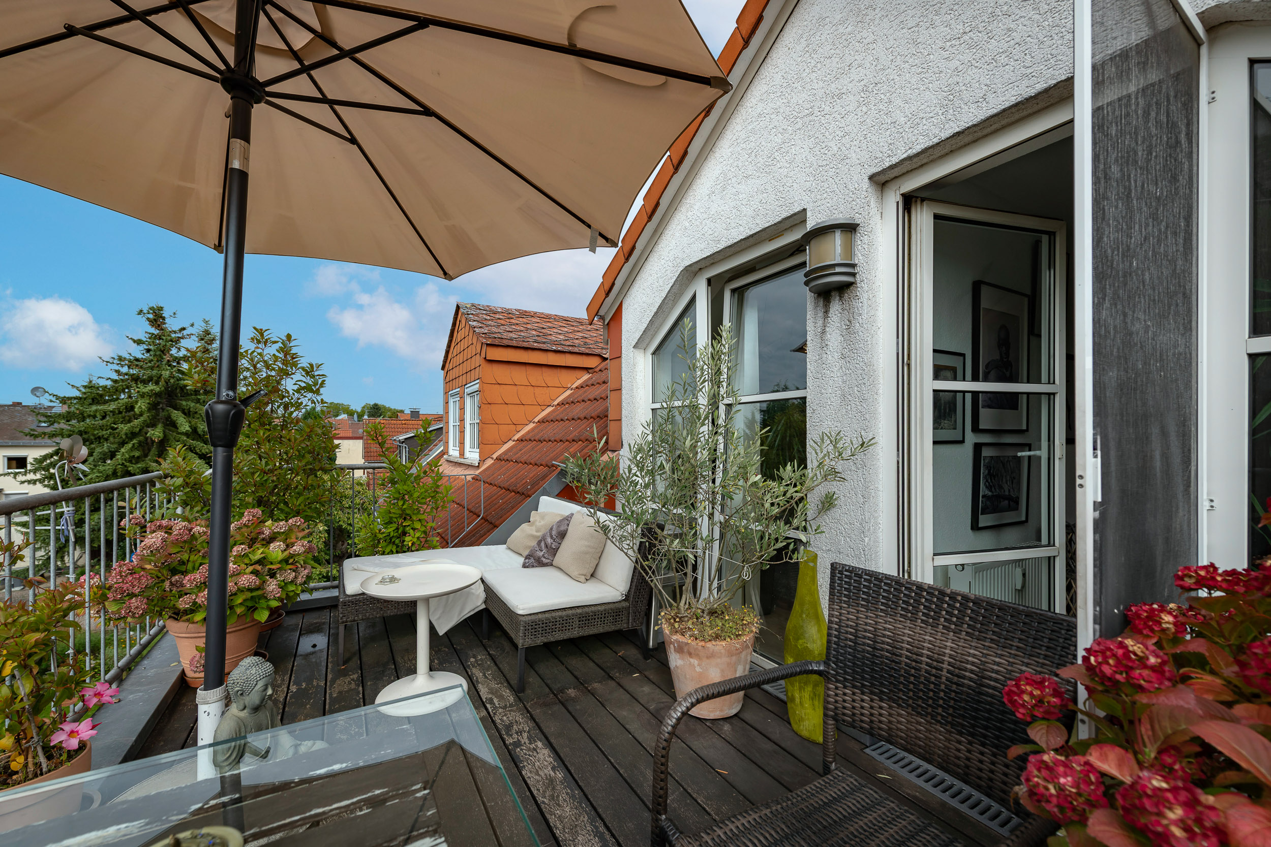 Ihr persönliches Paradies ist die wunderschöne Sonnenterrasse, die in den warmen Sommermonaten als erweitertes Wohnzimmer fungiert. Genießen Sie den Blick über die Dächer von Erbenheim und verbringen Sie schöne Stunden im Freien, ob alleine oder in geselliger Runde.
