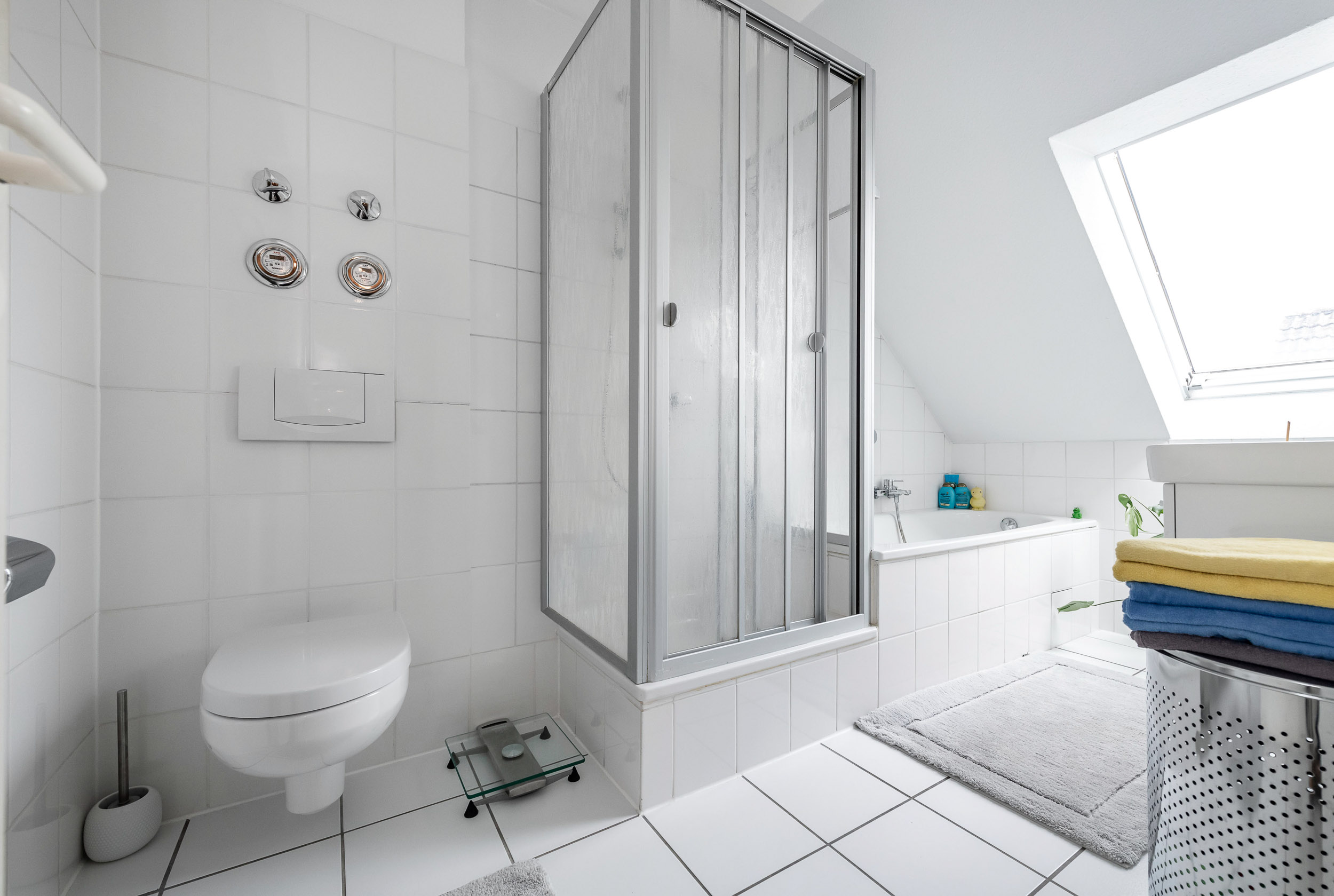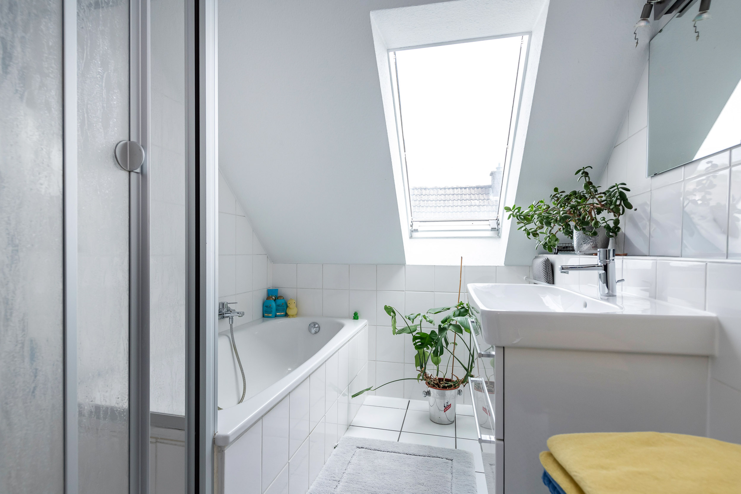 Tageslichtbad mit Badewanne und Dusche