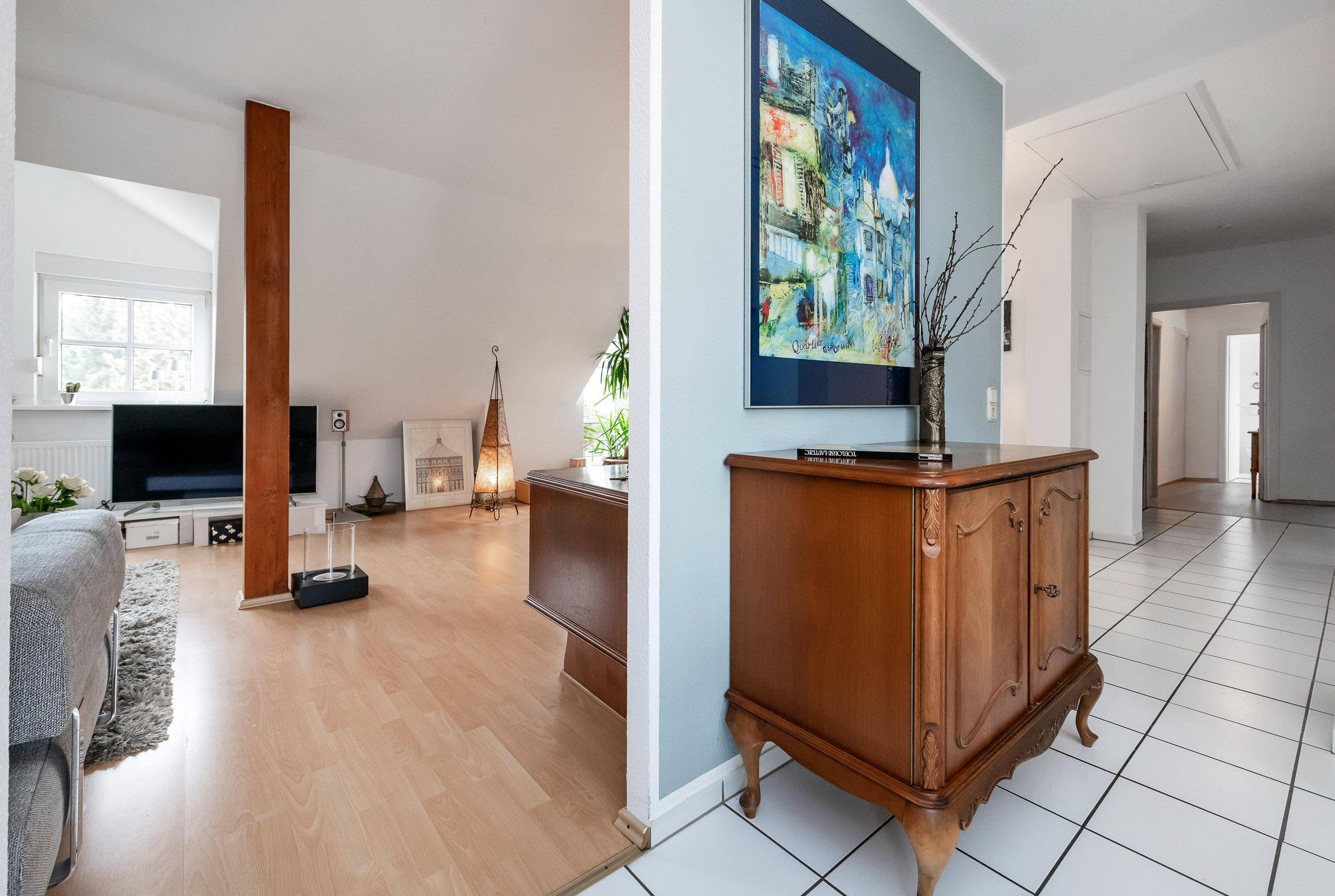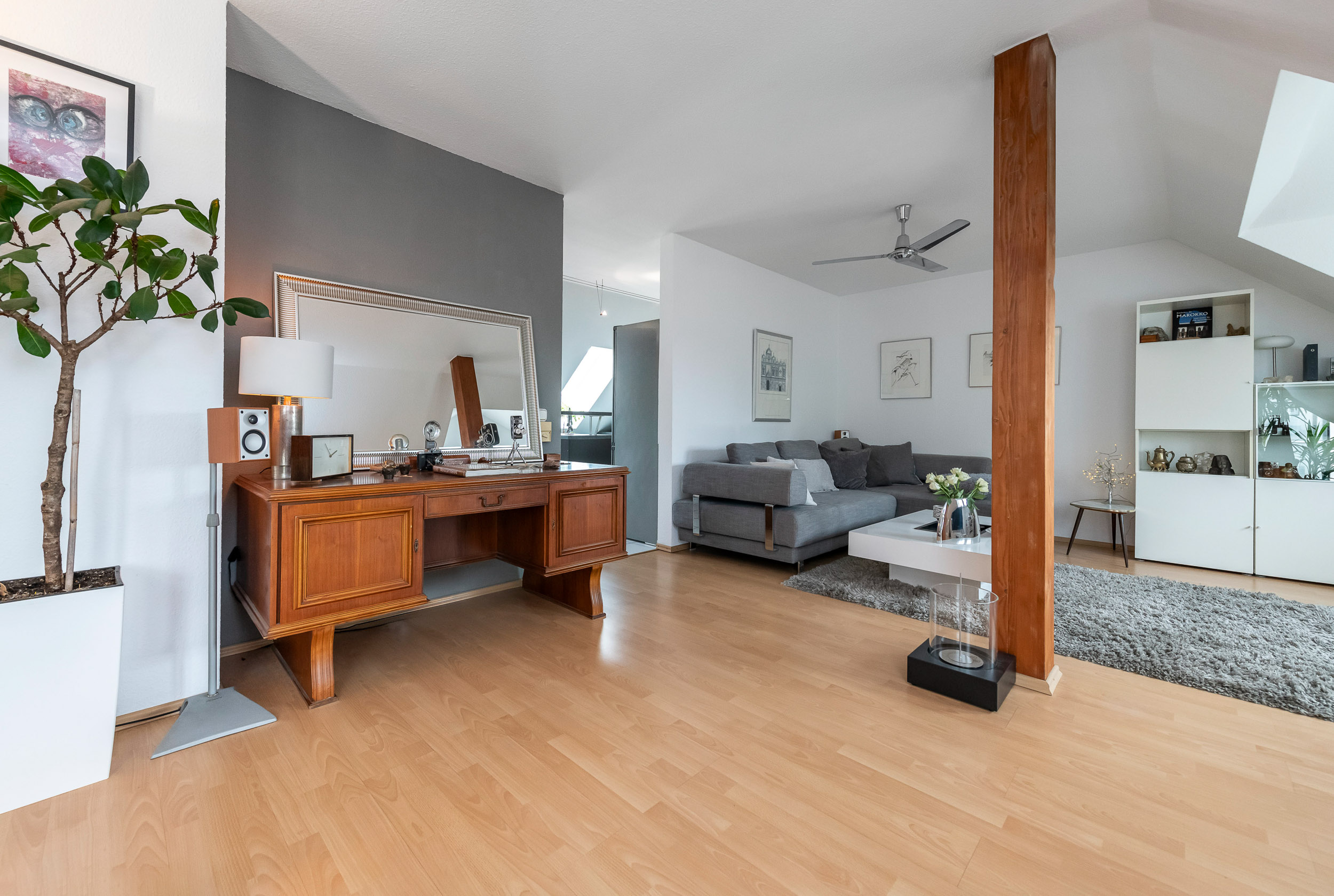 Willkommen in dieser großzügigen Dachgeschosswohnung, die Ihnen auf einer Wohnfläche von 101 m² viel Raum zum Leben bietet. Diese moderne 4-Zimmerwohnung befindet sich in einem charmanten zweistöckigen Gebäude, das im Jahr 1995 erbaut wurde. Die lichtdurchfluteten Räume und der durchdachte Grundriss schaffen eine einladende Atmosphäre, die sowohl Familien als auch Paaren und Singles mit Platzbedarf ein schönes Zuhause bietet.